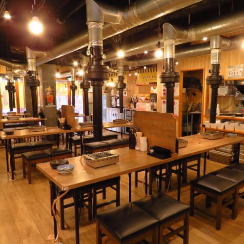 《渋谷 焼肉 駅近》幹事様必見♪団体様のお集まりに便利なテーブル席。もちろん、お一人様など少人数にもご対応致します!大小さまざまなご利用も大歓迎。テーブルをつなげることで団体様でもご利用いただけます。人数に応じてフロア貸切も承りますので詳しくはスタッフにご相談下さい。
